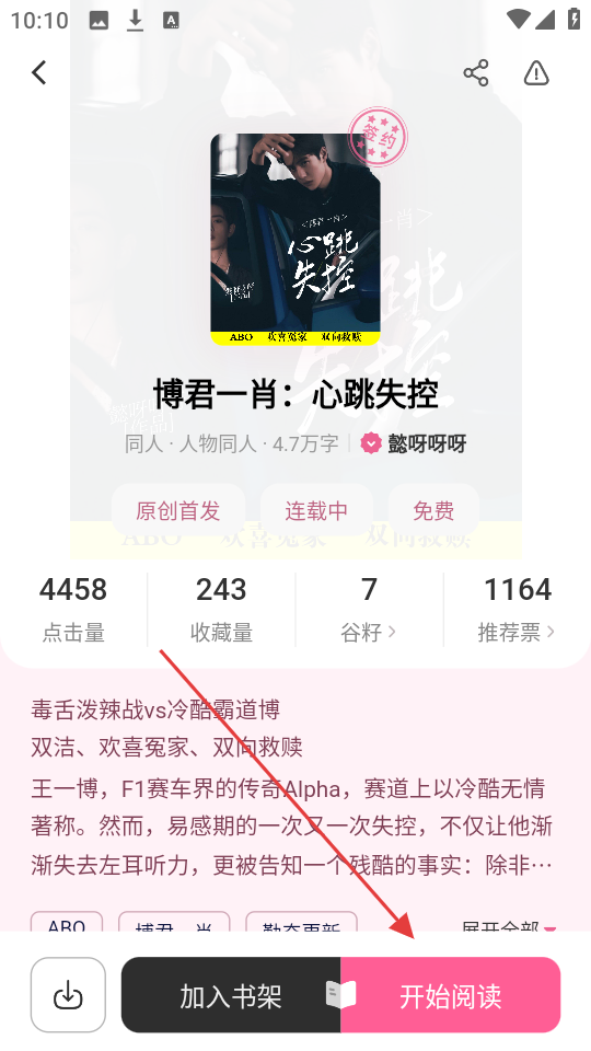 2、点击感兴趣的书籍,进入书籍详情页后,点击【开始阅读】,即可开始阅读该书籍哦。