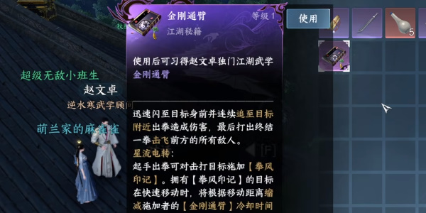 5、出示之后进行对话,对话结束之后我们就可以获得一本【金刚通臂】,任务也就完成了;