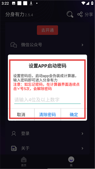 3、在密码设置弹窗里,输入4位及以上数字作为密码,还能看到忘记密码的解决方法呢。