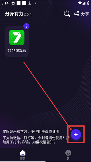 1、在【分身有力】首页点击右下角紫色加号按钮,就能进入克隆APP的选择页面啦。