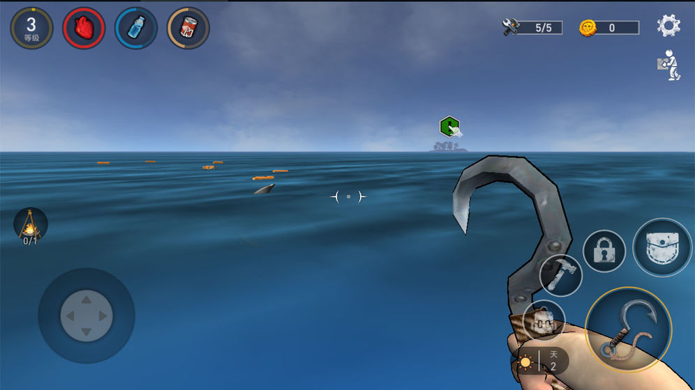 1、玩家必须沿途寻找各种有用的资源和食物,必须找到材料来建造一个木筏。