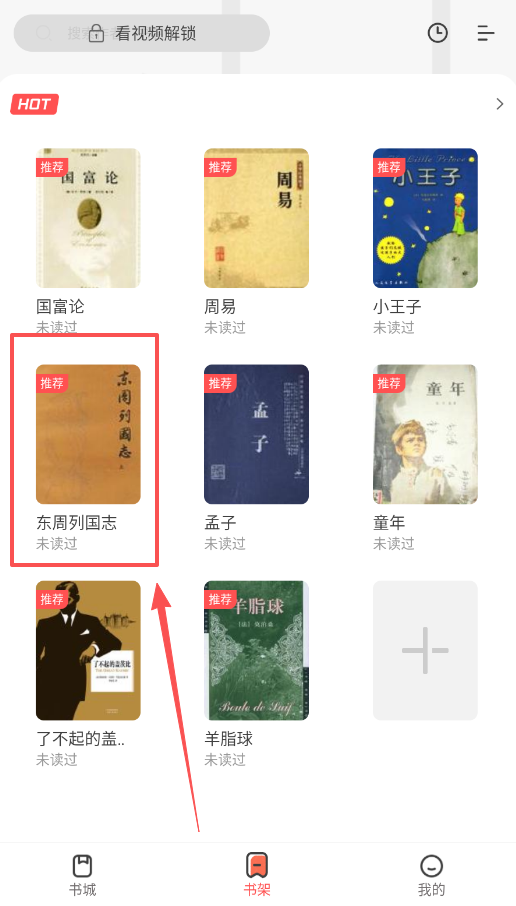 3、解锁专区是获取特定书籍的关键,对于东周列国志、羊脂球等显示“未读过”的书籍,只需完成观看视频的任务。