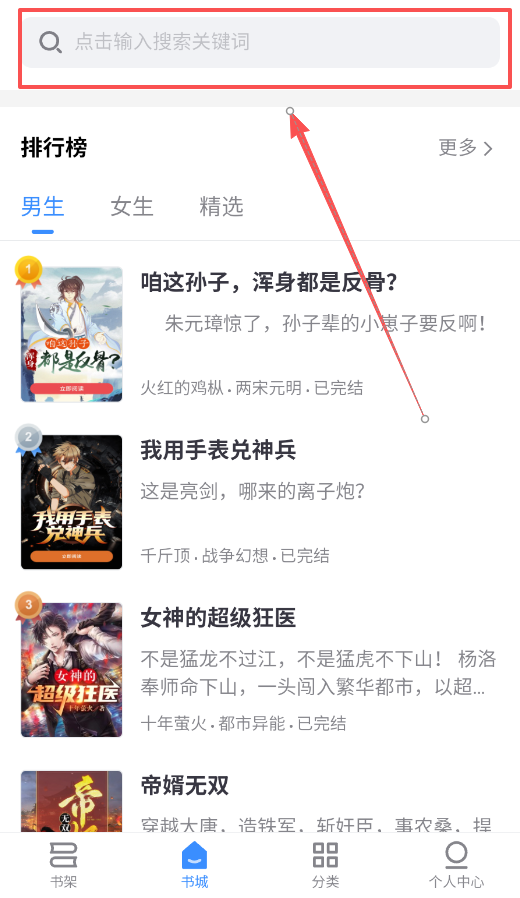 2、找书有技巧,明确目标就用搜索,想随便看看就活用“男生/女生”切换、题材标签和“连载/完结”筛选,能大幅提升找书效率。