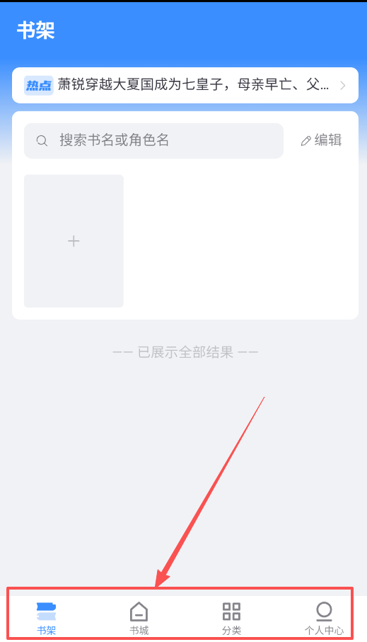 1、使用软件主要操作底部四个标签:书架找收藏、书城找新书、分类做筛选、个人中心管设置。