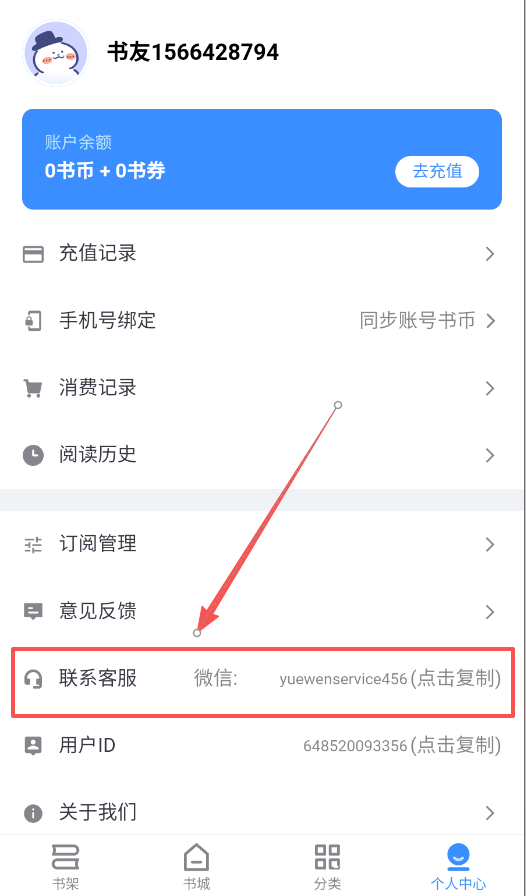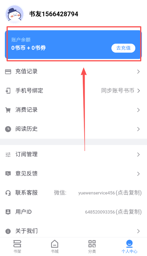 4、个人中心还提供账号同步、记录查询和客服联系等功能,方便你管理整个阅读账户。