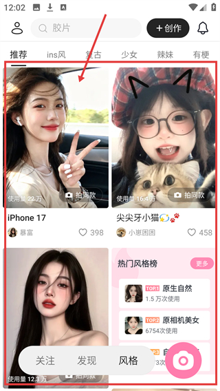 2、进入浏览页后,点底部的【风格】选项,能切换到风格分类页面,查看各类风格内容啦。