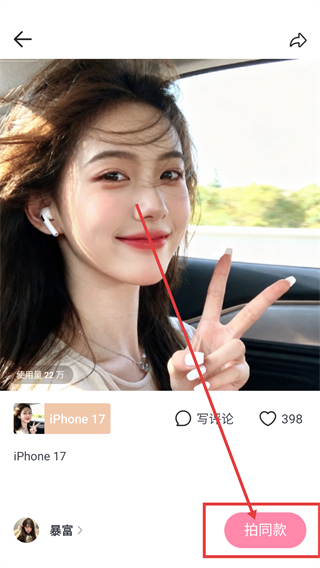 4、进入作品详情页后,点【拍同款】按钮,就能使用该风格模板,创作同款作品哦。