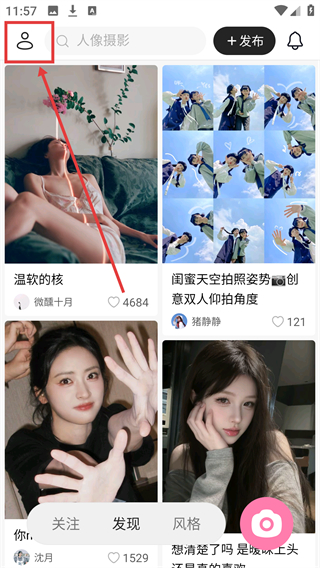 1、在发现页面点击左上角头像按钮,就能进入个人主页,查看自己的账号相关信息啦。