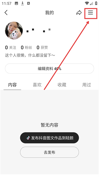 2、在个人主页点击右上角菜单按钮,打开功能列表,能看到草稿箱、设置等各类功能入口哦。