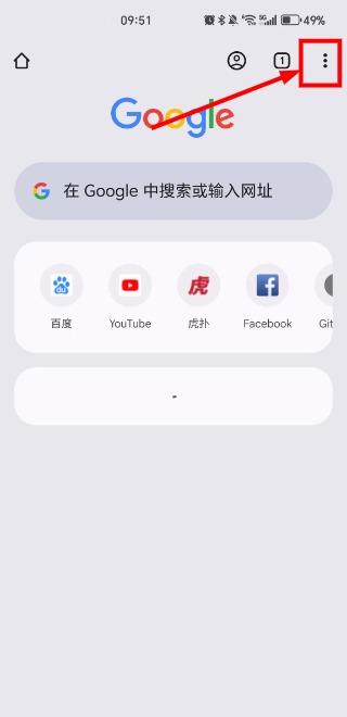 1、进入【Google-Chrome】主界面,点击右上角的三点菜单按钮,可展开包含设置、历史记录等功能的操作列表。