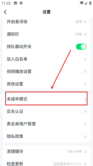 3、在设置页面找到【未成年模式】选项并点击,就能进入对应的功能页面,了解该模式的相关规则啦。