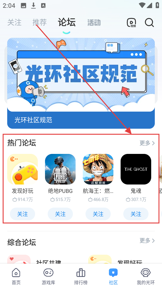 1、我们点击软件底部【社区】进入社区页面,然后点击上方【论坛】选项,就能进入论坛板块,去浏览各类论坛内容啦。