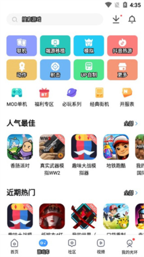 2、在游戏库中我们可以挑选多种不同类型的游戏,有联机手游、端游移植、抖音热游等板块,都可自行选择。