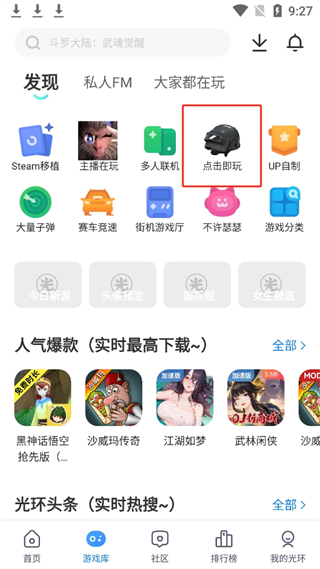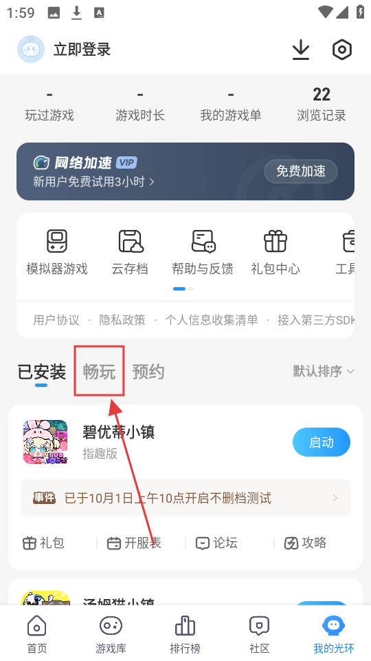 2、在畅玩页面,我们能看到【畅玩广场】入口,点击它就能进入畅玩广场,那里有更多精彩游戏等着我们去玩呢。