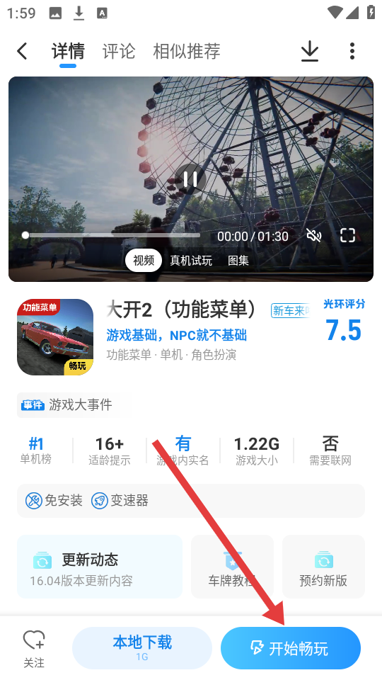 4、要是我们对某款游戏感兴趣,比如《火力大开2(功能菜单)》,点击进入详情页,然后点击【开始畅玩】按钮,就能开始玩游戏啦。