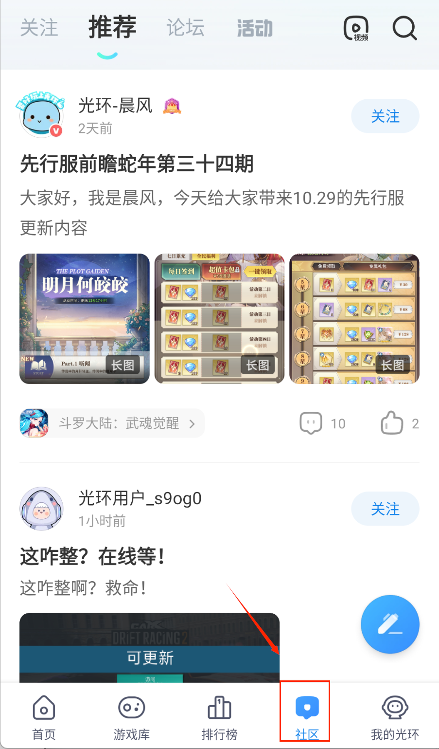 1、在社区页面可以浏览其他玩家的帖子和分享,关注感兴趣的用户获取最新动态,点赞评论互动交流游戏心得。
