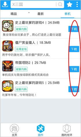 2、在“插件”专区,你可以看到最精品、最新的游戏插件,点击旁边的“下载”按钮,就能立马下载游戏插件,给游戏加速哦;