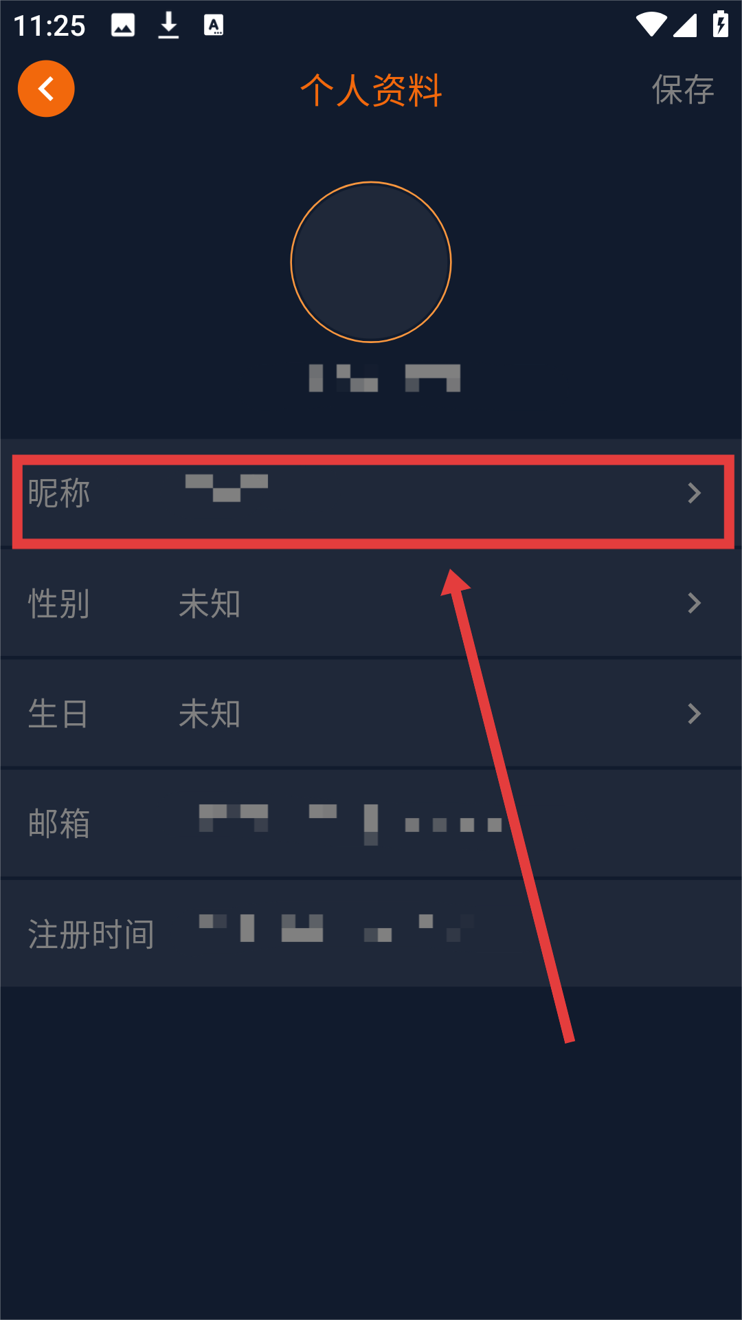 3、在个人资料界面点击【昵称】,可进入昵称编辑界面,修改个人昵称哦。