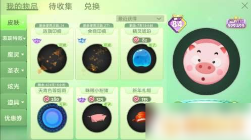 2.进入魔法屋后,点击右下角我的物品。然后点击待收集,在待收集里找到表现特效,点击表现特效。
