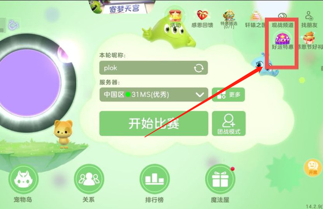 1.点击打开球球大作战,可以看到右上角有个好运特惠,点开。