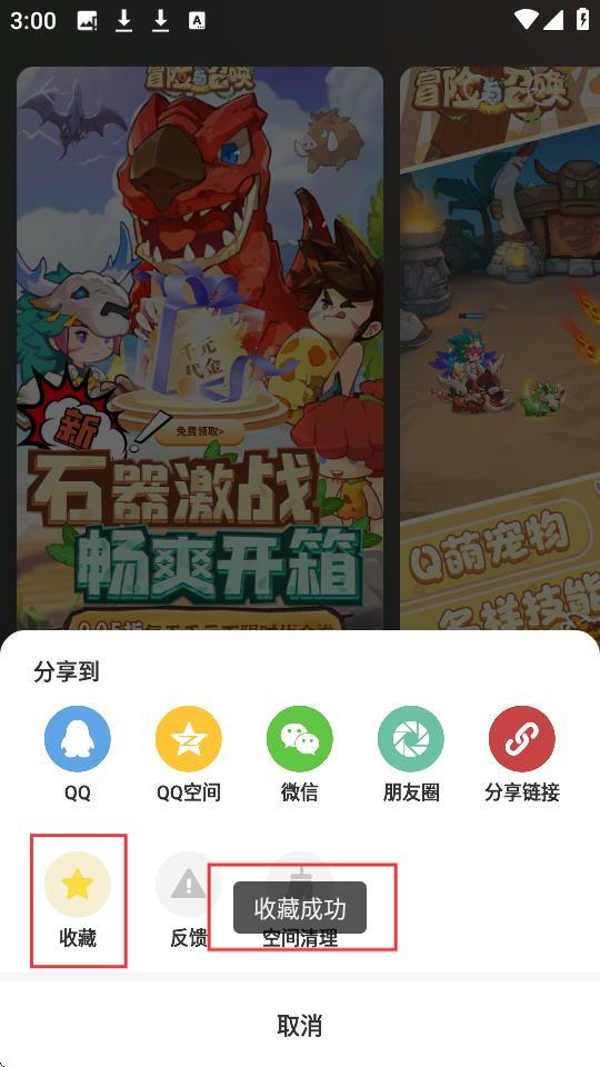 4、点击后,会提示“收藏成功”,说明游戏已成功收藏,之后找起来就方便啦。