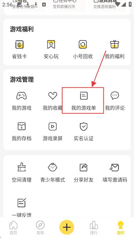 2、在个人中心页面,找到【我的游戏单】选项并点击,进入我的游戏单界面,以便开始创建操作哦。