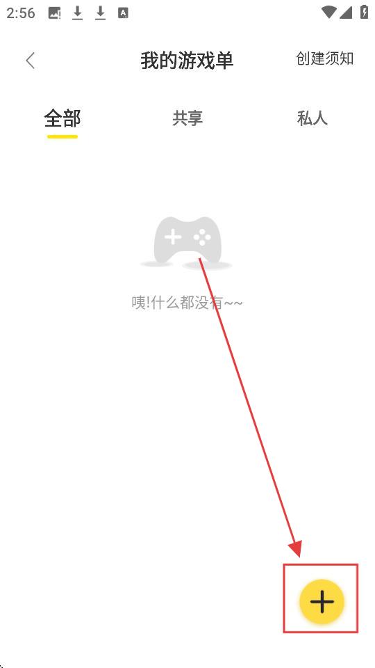 3、在我的游戏单界面,点击右下角【+】按钮,进入新建游戏单页面,开始填写游戏单信息吧。