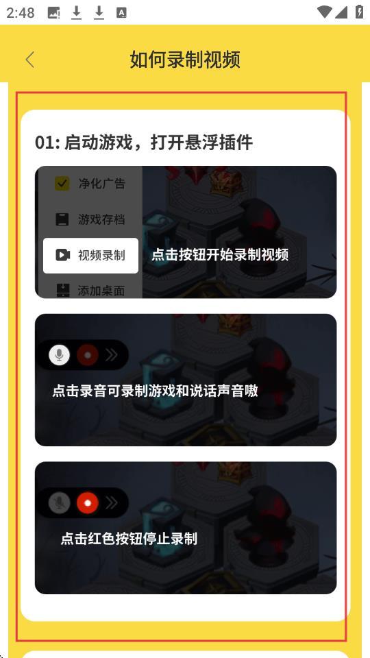 4、查看录屏方法时,按照步骤,启动游戏、打开悬浮插件,点击按钮开始录制,还能录制声音,最后点击红色按钮停止录制呢。
