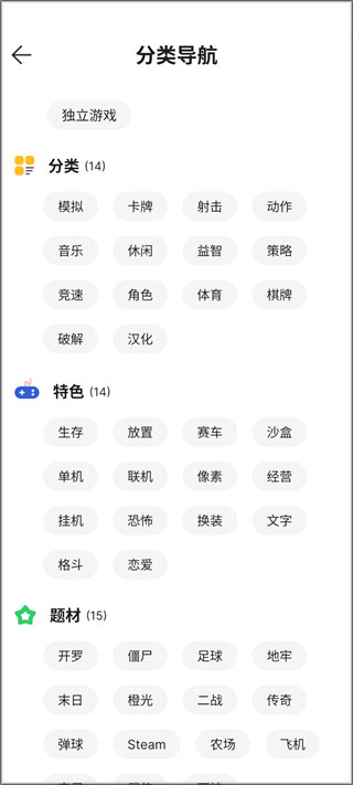 2、搜索查询界面可根据热门标签找寻喜欢的游戏类型;