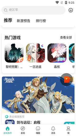 2、发现,在发现界面中,有许多新游、分类游戏,以及游戏专题;