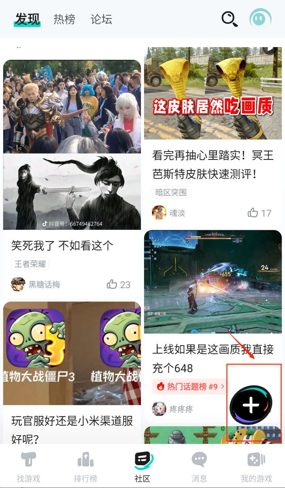 1、在社区页面可以看到热门话题和玩家分享,比如游戏攻略、趣味视频等,遇到感兴趣的内容可以点赞收藏,也能发表自己的看法。