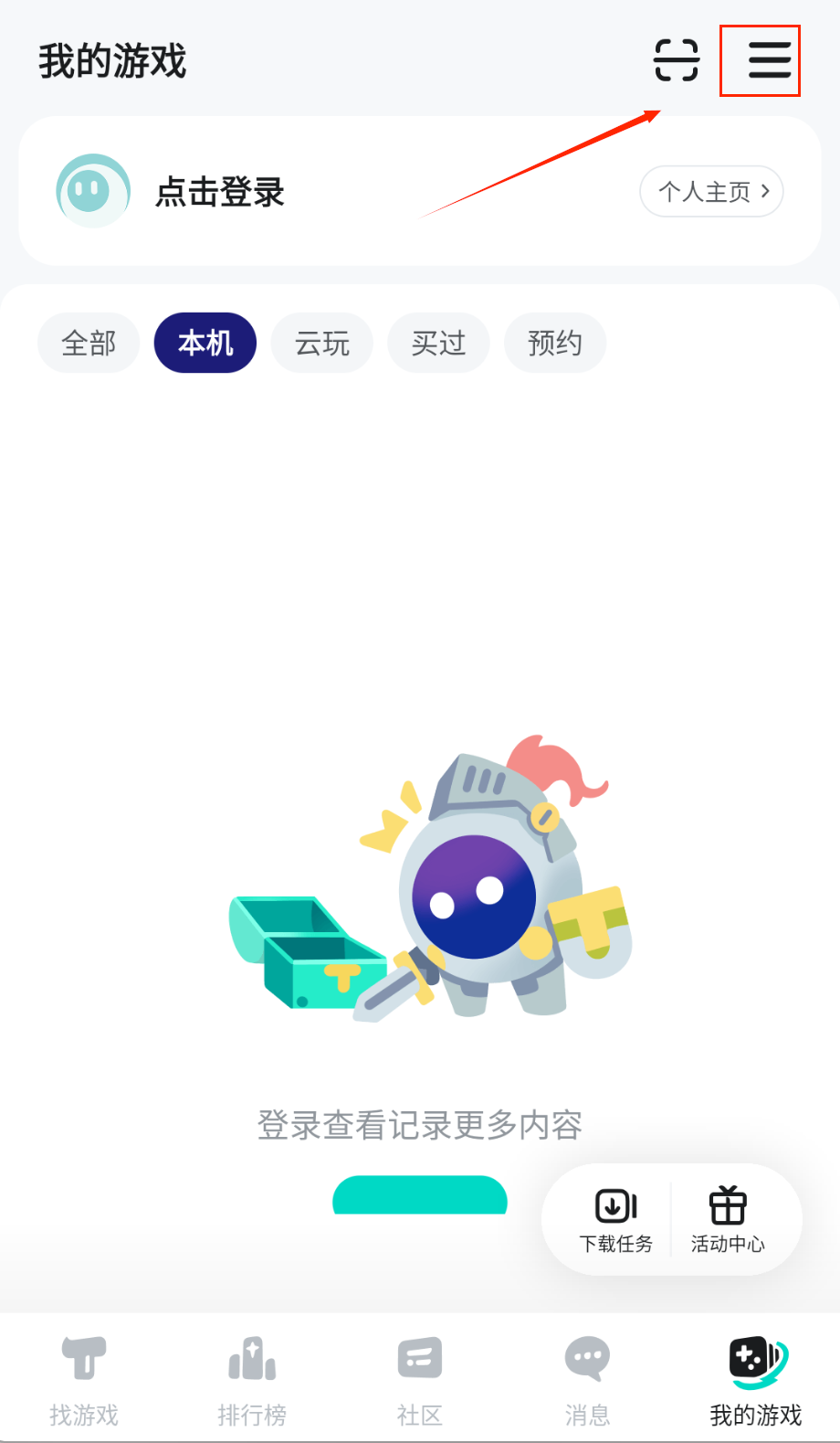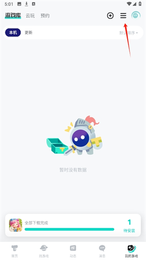 1、登录后进入"我的游戏"页面,这里会显示本机已安装的游戏列表,你可以按照全部、本机、云玩等分类查看,方便管理自己的游戏收藏。