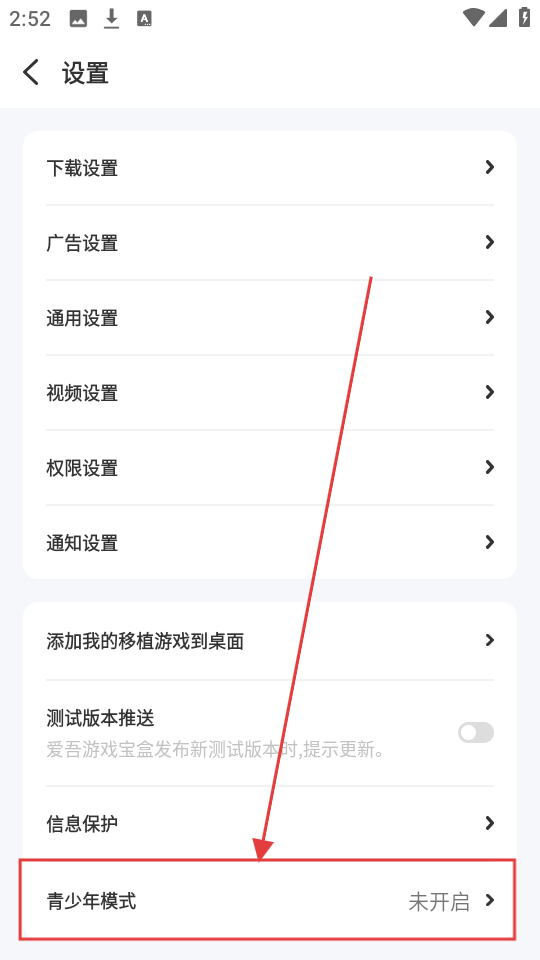 2、进入设置后,点击【青少年模式】,就能进入青少年模式的设置页面哦。