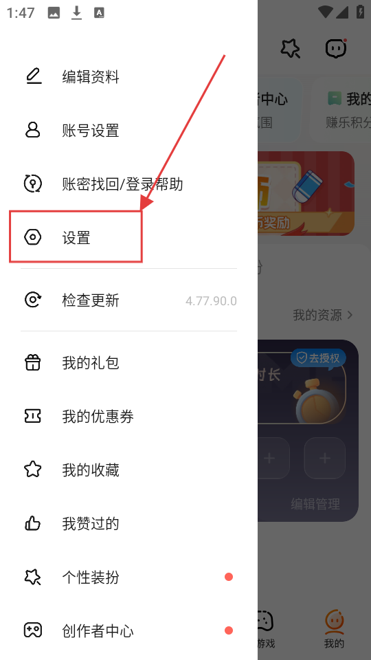 2、展开侧边栏菜单后,若想进入设置页面,点击【设置】选项,就能进入设置页面啦。