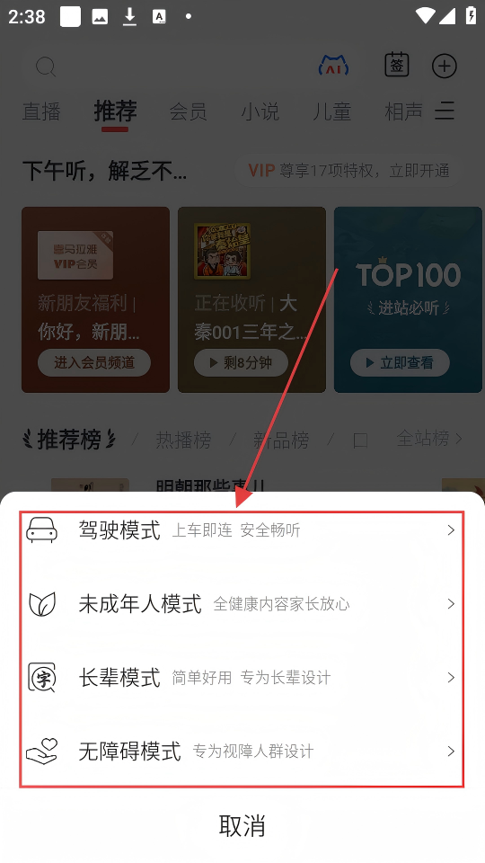3、切换模式界面有驾驶模式、未成年人模式等,选适合的模式就好啦。