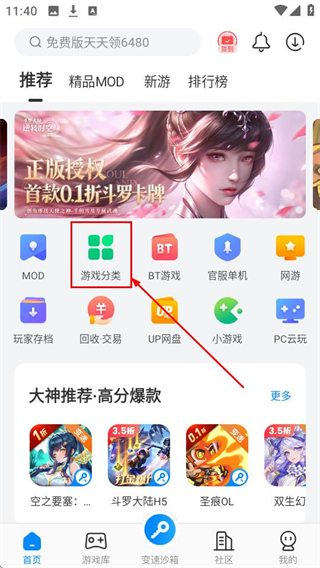 1、点击【游戏分类】,进入分类页面,能查看各类游戏的分类列表哦。