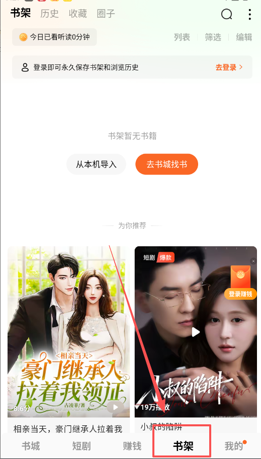 3、收藏管理个人书单,使用“书架”功能收藏你发现的好书,这样无论何时点开“书架”标签。