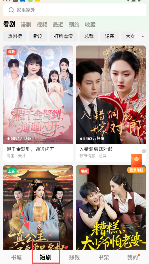 4、切换短剧丰富体验,如果你看累了文字,可以去“短剧”页面,点开即可观看。
