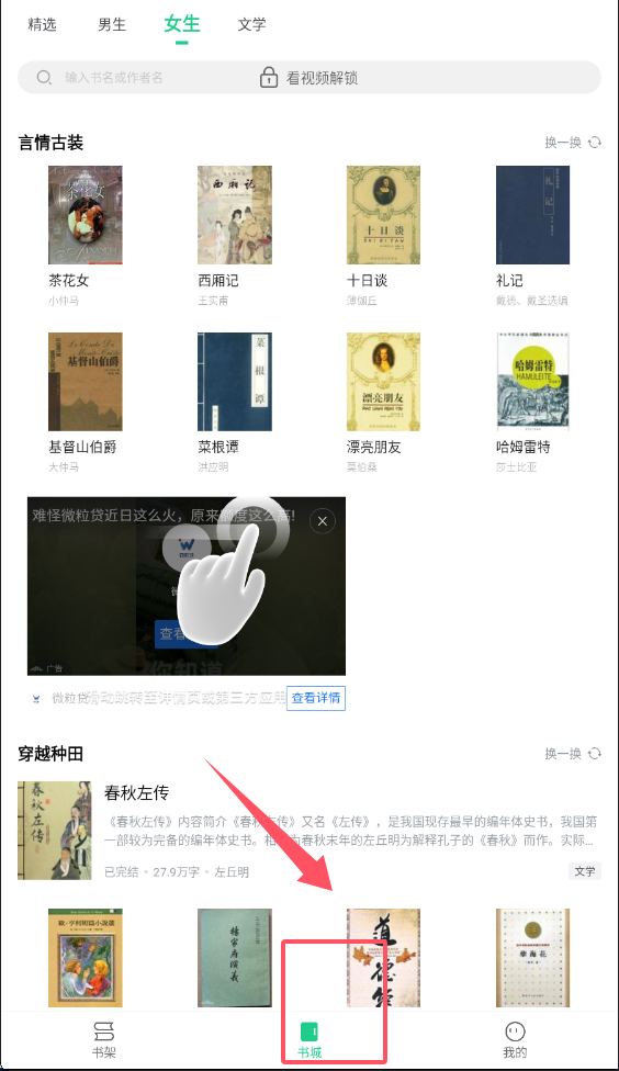 1、打开软件后,底部导航栏清晰标明了书架、书城和我的三个核心区域。想找新书的话,直接点击书城。