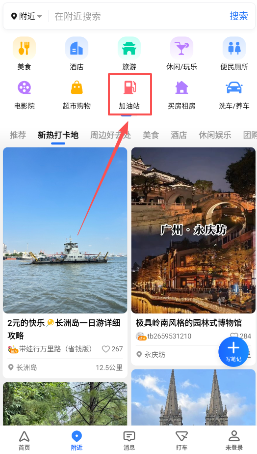 2、利用附近页面的分类图标快速筛选周边服务,无论是找加油站还是便民厕所,大大提升日常出行的效率。