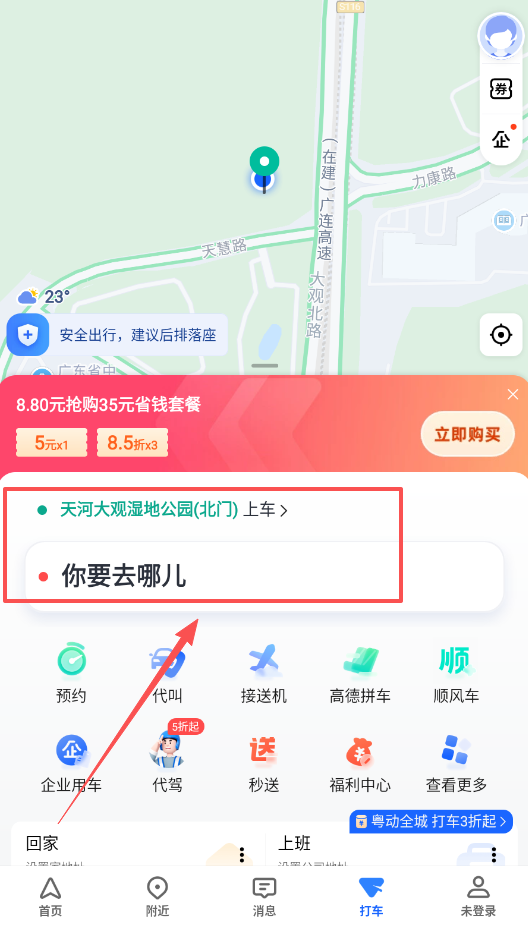 3、使用打车功能时,善用预约和代叫等选项来满足不同场景需求,比如为朋友叫车或规划次日行程。