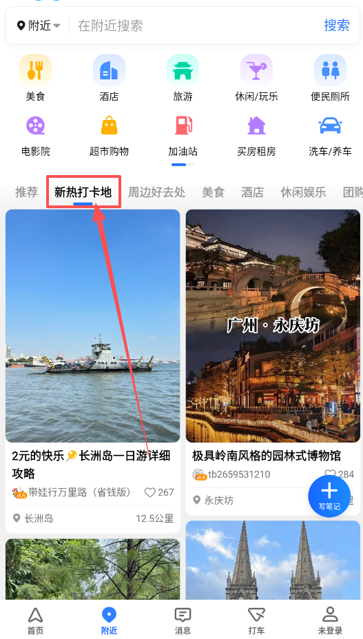 4、经常查看附近页的推荐栏目,系统会根据位置智能推送热门打卡地和优惠活动,帮助你低成本探索周边新鲜事物。