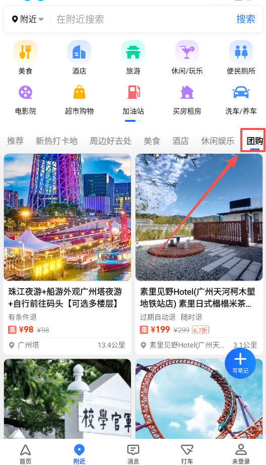 4、多多探索附近页的推荐和团购栏目,那里不仅推荐周边好去处,还常附有优惠福利,比如餐厅代金券。