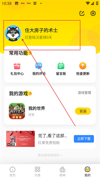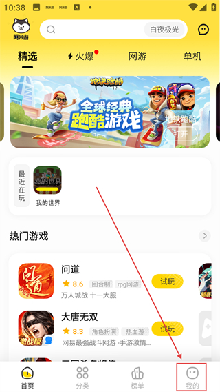 1、打开阿米游,点击底端的“我的”,然后点击“游戏管理”选项。