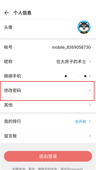 3、在个人信息页找到【修改密码】选项并点击,就能进入密码修改的操作界面啦。
