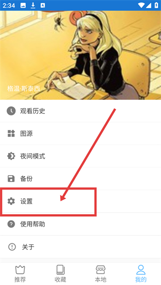 2、在个人中心找到【设置】并点击,进入设置界面,可管理阅读相关功能啦。