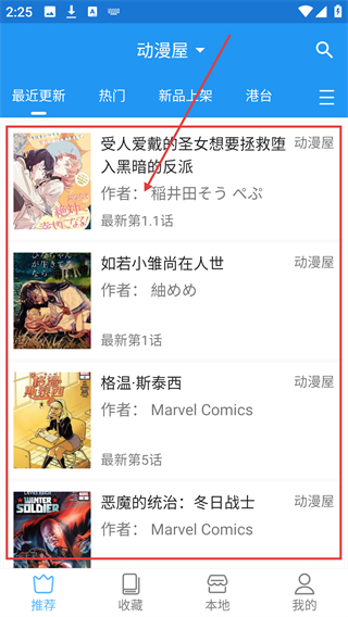 1、在推荐页,可浏览各类漫画列表,选心仪的漫画条目,就能进入它的详情页面啦。