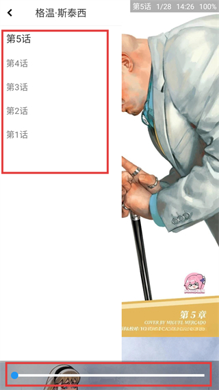 3、阅读漫画时,左侧会显示章节列表,还能拖动进度条,快速切换到想看的页面呢。