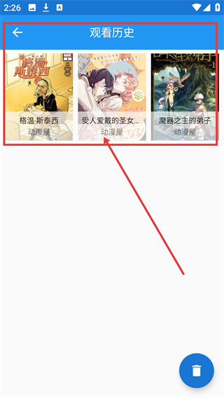 4、在观看历史页,能看到之前看过的漫画记录,点对应的漫画,就能继续阅读啦。