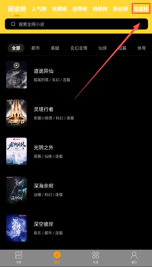 1、软件首页的核心是各类榜单,如人气榜和完结榜,能帮你快速了解流行趋势。